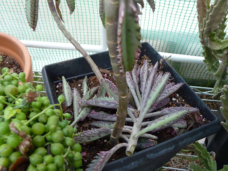 My Kalanchoe 'Fantastic' is minus a few babies that were growing at her base. We won't discuss the nice fat leaves that got chopped.